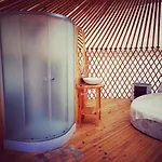 Jurta Hotel Balatongyorok距离Bel Matyas Viewing Tower大概有10分钟车程,俯瞰花园. 这栋别墅一共具有6间客房;房间里配有沙发 和办公桌.